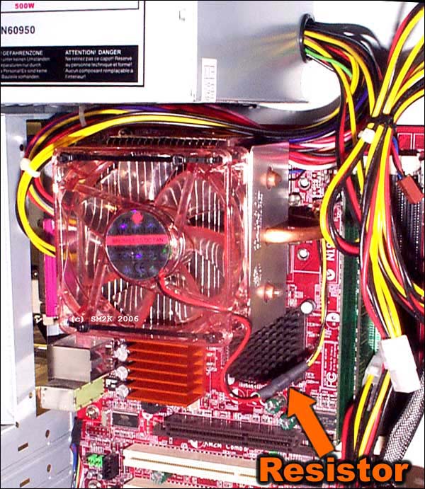 ![]() - About building a 'silent' computer - These page is about my efforts to make my own 'HomeBuilt' PC-Computers as quiet as possible. I also make som misstakes and other 'discoveries' along the way. ![]() ColorSit low budget case Used parts / equipment ====================== ColorSit MidiATX Case With standard 500W Powersupply TaiSol HeatPipe CPU cooler Extra Surplus FAN 80 x 80 on CPU Cooler Motherboard : MSI KM2M-Combo L CPU : AMD Sempron 2500+ @1800Mhz Memory : Kingston ValueRAM PC3200 512Mb NoECC HardDisk : Maxtor 6Y080P0 (80,0GB) Grafic : Built in on MB Resistors : 1 or 2 1/4-1/2W resistors 30-50ohm **See Text Measured temperatures ====================== CPU Temp : 37dgrC normal 41dgrC max HDD Temp : 34dgrC normal 39dgrC max Motherboard : 29dgrC normal 33dgrC max Measured noice ====================== 12-16 dB MaxAbout the PC-Cabinet This is a realy 'LowPrice' case, however i do think the quality is quite good for the price! And the 500W ATX-Standard Powersupply with 120mm FAN is working 100% OK! How it's done The modifications in tree steps.