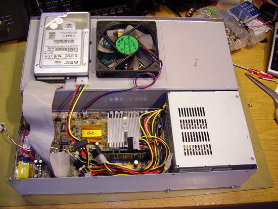 ![]() - 'The ugly one' - 2007.05.17 This Home Brew 700MHz Intel celeron computer is used for weather data and image capturing. Mainbord is 'abducted' from a scrapped 'BookPC' model BK630. It's now mounted inside a homemade 0,7mm steel chassi (The ugly white box!) The main idea was to get a Small and cheap maintenance free computer that I'm also able to mount directly on any flat surface s.a. the wall.