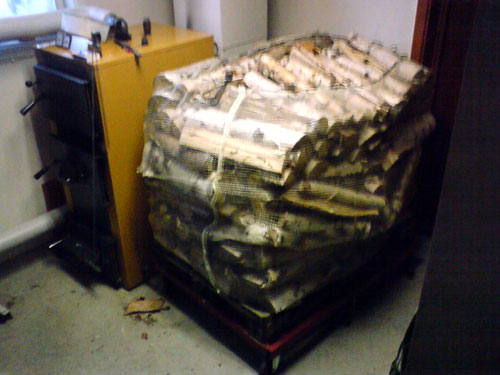 ![]() - Ved / Hantering Dålig eller fuktig ved blir inte bättre av att du eldar den i en bra / effektiv panna, tvärt om så minskar t.ex. fuktig ved pannans verkningsgrad som sämst till under hälften!!! - Det är därför vedhanteringen är en så viktig del av processen, bra vedkvalite minskar även din arbetsinsats betydligt när det sedan är dax att elda. Ved av lövträd (Björk) är att föredra. Blandved går också bra medans ren Furu / Gran ved är något sämre. Bäst / Rätt fukthalt får man genom att kapa / köpa sin ved minst ett helt år innan den ska eldas med. På så sätt hinner veden torka ordentligt. ![]() Vedpallar under tak (Torkad 2-3år) Kapad / kluven ved travas för att torka utomhus,- helst under tak, om du lägger en pressening över, tänk på att denna då inte skall gå ända ner till marken, veden måste kunna få luft för att torka. ![]() Vedpall på väg till pannrummet Vi hanterar klyven/travad ved på EURO-Pall, detta förutsätter naturligtvis att man har tillgång till egen traktor. Nu behöver vi fylla på ved i pannrummet ca: 1ggr / veckan när det är som kallast. Tidigare tog vi in ved med kälke (Vintertid) och med skott-kärra (Sommartid) - Det är naturligtvis mera tidskrävande men det gick också bra. ![]() Vedpall på väg till pannrummet Efter att veden har torkat i 1-2år så är det även bra om du kan värma / yttorka veden i ca: 1-2 veckor innomhus (Varmt) innan den ska eldas. ![]() Veden torkar i pannrummet 0-14dagar innan eldning Go Back! ![]() ©1999-2006 SM2YER Goran |