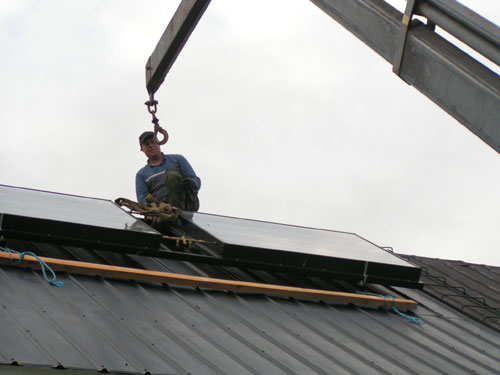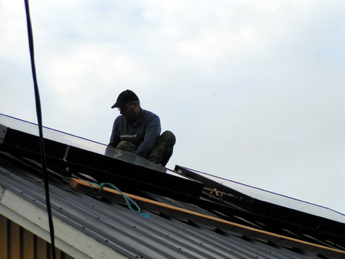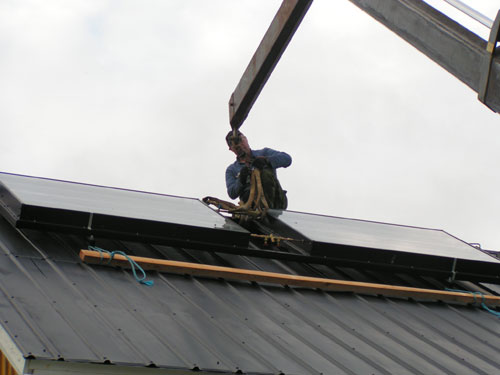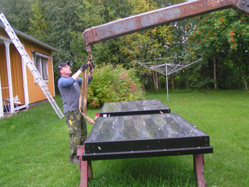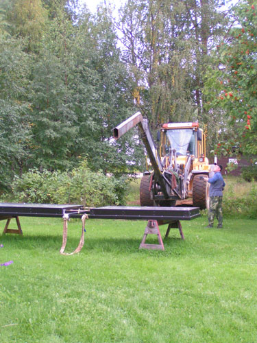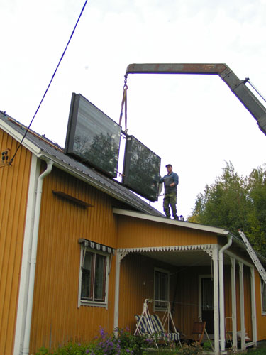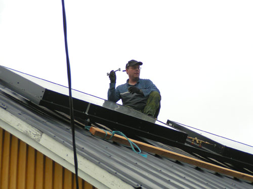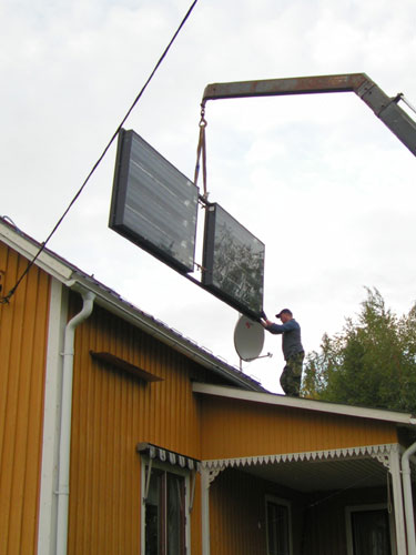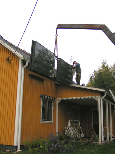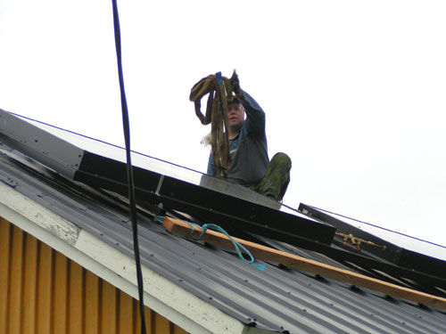 ![]() - Solfångar lyftet - 2008.08.22 Fick äntligen solfångarna på plats uppe på taket. Själva lyftet tog ca: 5 minuter! - Förberedelserna har tagit drygt två månader!!! Fotograferat av Lena. (Sambo) ![]() Traktorn kör fram,- Allt är förberett... ![]() ...Bara att kroka i. ![]() ![]() Jag håller i för att det inte ska börja att svaja... ![]() ...Sedan går det fort... ![]() ...Upp... ![]() ...Upp... ![]() Så är dom på plats! Äntligen. ![]() Bara att kroka loss... ![]() ...och knyta loss stroppen. ![]() ![]() ![]() Klart! Go Back! ![]() ©1999-2006 SM2YER Goran |