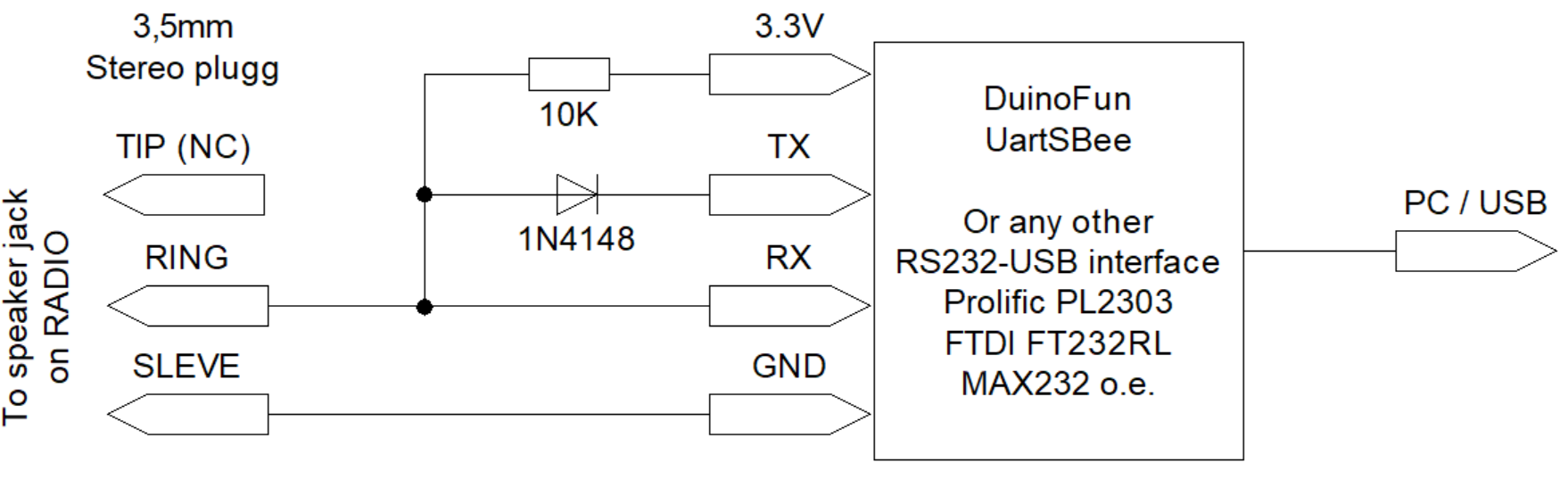 Senast uppdaterat 2024.05.09 Radion verkar att fungera någorlunda, mottagaren är väldigt störningskänslig. Antagligen 'direct-conversion' i ingångssteget, kan inte hitta någon information om detta varken hos tillverkaren eller på nätet i övrigt. Sändaren går däremot riktigt bra, klar och fin modulation, men antagligen lite 'oren' utsingnal då den påverkar FM-Radio mottagning rejält när man sänder. ![]() Algon magnetfot / Testar SWR med 'RigExpert AA-520' instrument 2024.04.28 Har ändrat lite i programmeringen, testar radion hemmifrån på riktantenn, inga problem att öppna repeatrar i Boden och Måttsund. Noterar att där verkar att vara väldigt mycket störningar vid sändning, får RF genomslag på i princip allt jag har igång, från HF till UHF? - Måsta kolla av detta lite bättre... 2024.04.27 Kör med radion från bilen just nu, har en 'Algon' magnetfot / antennspröt, det är något som tidigare har använts inom räddningstjänsten. Har INTE testat VSWR på antennen ännu, vilket jag naturligtvis borde ha gjort. Den verkar i.a.f. att fungera riktigt bra. Programmerar radion med 69MHz PR-Kanalerna 1-18, samt åkeri RIKS1 -- RIKS4 och våra lokala repeater kanaler. Använder mitt 'Duinofun UartSBee' USB-RS232 interface och en DIY kabel. Samma kabel som tidigare har använts till AnyTone® AT-588 och RETEVIS RT9000D. I praktiken går det att använda vilket USB/RS-232 interface som helst, eller att koppla direkt till en COM-port om man har en sådan på sin dator. ![]() Duinofun UartSBee interface med FTDI FT232RL chip 3,5mm Kontakt / DIY kabel, schema På radion kopplas programmeringskabeln in baktill till högtalarutgången med en 3,5mm teleplugg. RX/TX-data kopplas till Ringen på kontakten, jordning kopplas till kontaktstommen. Koppla inte in något på 'toppen' det är AUDIO-UT (Högtalarutgången). Använder Anytone programvara CPE AT779V_6688 v.1.0 nedladdad från fbradio.se[L1] - Programmeringen gick någorlunda smärtfritt, använder kortast möjliga kablar, fick lite problem när jag använde en 1,5m USB kabel med tvivelaktig kvalite / ursprung. (Har haft samma problem tidigare med andra apparater) - Med kortare kabel gick det bättre. Rätt drivrutiner till USB-RS232 interfacet är också ett måste, fel drivrutiner kan ge märkliga problem. ![]() Skriver data till radion / Klart, radion startar om... Kanaldata Kör 'TX off' = 'Yes' på åkeri RIKS1 -- RIKS4 samt 'Scan' = 'Add' på dom kanaler som jag vill scanna. ToDo Som dom flesta 'projekt' så är där alltid något som kan göras bättre / annorlunda eller ändras lite på... Beskrivning Radions typbeteckning är 'AT-799V 6688' Enl. anytone.net[R1] - Den är som jag skrev tidigare, väldigt liten. Yttermått: 104mm(Bredd) x 109mm(Djup) x 25mm(Höjd) och väger under 500gram totalt. Noterar att mikrofonkabel och kabeln för spänningsmatning sitter fastmonterade direkt i radion utan kontakter, vilket antagligen är väldigt opraktiskt, men gör att apparaten blir billigare att tillverka. Inköp / Kostnader / Frakt 2024.04.17 Har beställt radion från fbradio.se[L1], den kostade 1495kr inkl. frakt. Radion skickades med DHL samma dag, hämtade ut den 24.04.22.