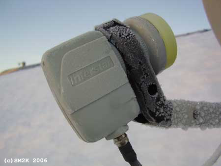 - Polar mount Setup procedure -1. Make shure your mounting point, mast or other sutable pipe is in 100% verical level. 2. Mount motor bracket on to the motor unit, set elevation according to your actual Latitude. 3. Attach motor to your mounting point, mast or other sutable pipe. Pointing to the south.** 4. Mount parabola dish on the motor shaft, Center it for max elevation when directed to south.** 5. Adjust parabola dish angle approcimate 30° minus your previous azimuth angle.*** 6. Run the motor to the nearest satellite position (east or west) to your position.**** 7. Fine adjust (Rotate) the motor bracket to mast clamp to fit scale (Tuner reading) (Calgulate differance, satellite potition to reading, run motor to accurate setting and then Rotate the motor bracket to mast clamp back into position) 8. You might have to adjust azimuth angle after you find right east / west position. 9. Repeat procedure 7-8 if your not satisfied. ** Your compass south. *** The angle used when your parabola dish was used without motor. **** You do not need to recalculate, in relative position to earth orbit position at this time. ![]() INTERSTAR 0,3db LnB Comment this page... Comments *** End of page *** <-- Go Back!
