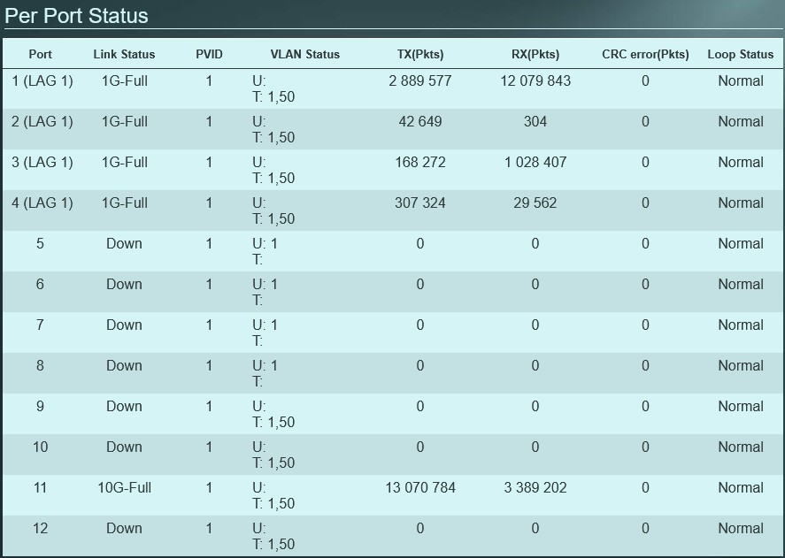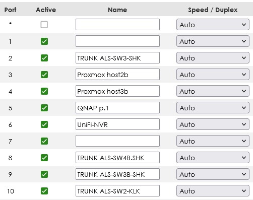 Har just nu två 10GbE trunk länkar och tre 2,5GGbE anslutningar. Ytterligare 2,5GbE anslutningar finns på switch ansluten på 10GbE port 9.