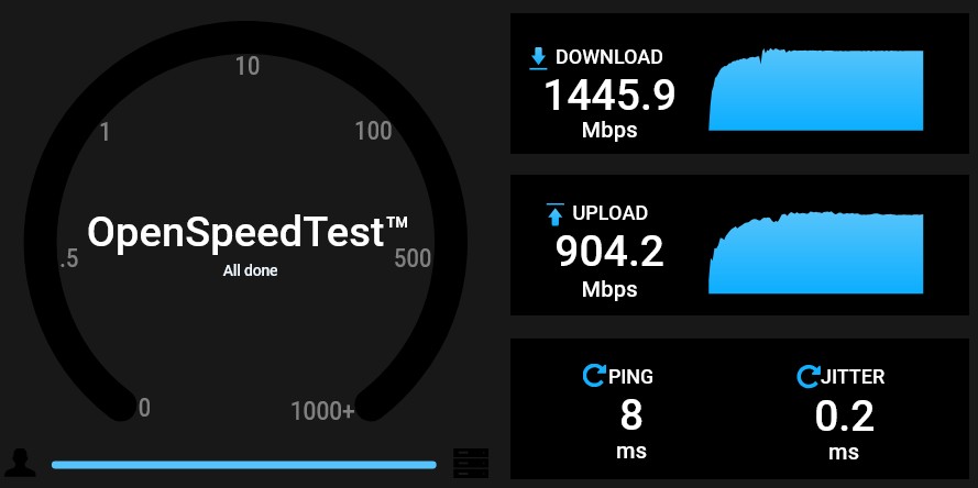 Längre ner på sidan (2025.06.30) finns SpeedTest resultat när jag kör över en 'Zyxel XMG1915-10E' switch, övrig utrustning är densamma.