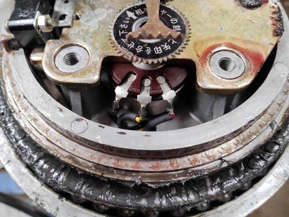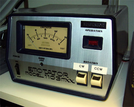 ![]() - Antenna Rotator EMOTATOR 1103mxx - 2024.12.26 Riktnings instrumentet på min EMOTATOR 1103mxx har inte fungerat på ett bra tag, bestämde mig för att skaffa ny rotor. För att matcha EMOTATOR rotorn föll valet på en 'YEASU G-2800DXC'. Sedan en tid är den nya rotorn nu på plats. Som man kan se på bilden här nedan så är 'EMOTATOR 1103mxx' ingen liten 'skrutt' rotor, 400kg max i vertikal last, 2.5m2 max vindyta och 10000kg bromskraft. Klart värd att försöka fixa till. ![]() Gammal / ny rotor / Ny rotor på plats EMOTATOR 1103mxx rotorn är dessutom väl omhändertagen genom åren och därför i väldigt bra skick. Öppnar övre delen för att komma åt potentiometern 'M-57' som styr riktningsvisaren. Den sitter direkt under 'M-113 Upper Gear Case', det är bara att lossa 6st skruvar 'M-119' och lyfta av överdelen. ![]() Potentiometer 'M-57' & 'M35 Upper Frame' / Potentiometer Potentiometern 'M-57' (Se bild ovan) är monterad på 'M-35 Upper Frame' lätt att komma åt. Potentiometern är trådlindad, linjär, 600Ω/2W - En exakt likadan kan nog vara svår att hitta. Kollar runt lite på nätet, fastnar för en 1KΩ/3W trådlindad potentiometer 'KYOCERA/AVX ABW2' parallellkopplad med ett 1,5KΩ/5W trådlindat effektmotstånd. Resulterande motstånd blir 600Ω. Formel: 1/(1/1000+1/1500)=600 potentiometer 'KYOCERA/AVX ABW2' / 1,5KΩ/5W trådlindat effektmotstånd Hittade båda dessa på samma ställe = 'www.conrad.se' - Total kostnad inkl. frakt blev: 410,85sek ![]() Controle Unit ![]() Rotator Unit - Documentation - - Technical data - FACTORY SPECIFICATIONS ======================================== Power Supply .......... 220 Volt 50/60 Hz 80VA Antenna Rotation ...... 110 sec / 360dgr Allowable Antenna Fly Wheel Effect .......... 700 Kg / Sq M Rotation Torque ....... 1000 Kg / Cm Braking Torque ........ 10000 Kg / Cm Allowable Antenna Wind Surface ............... 2.5 Sq M Bending Moment ........ 7000 Kg / Cm Vertical Load ......... 400 Kg / Max Antenna Diameter ...... 40 - 62 mm Connecting Cable ...... 7 conductors Dimensions ............ Weight ................ Manufactory ........... EMOTATOR Inc. Japan *** End of page *** <-- Go Back! ![]() ©1999/2000/2001/2002 SM2YER Goran |