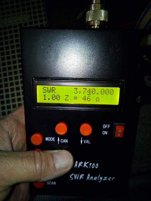 2017.07.05 har testat SARK-100 instrumentet i ett par dagar nu. Det är mycket enkelt att använda, man startar upp det, väljer band och trycker 'scan' så scannar instrumentet igenom valt band, efter några sekunder visas användbar bandbredd och sedan visas center frekvens, swr och impedans.