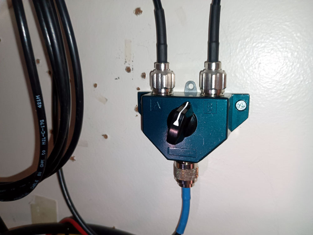 Senast uppdaterat 2026.04.11 Jobbar med kablage, lägger på lite krympslag vid kontakterna på RG-217 kabeln & provmäter. Använder 'Raychem 25/8' krympslang med smältlim invändigt, den går lätt utanpå kontakterna och kan krympa ihop ner till 8mm. 'Raychem' krympslang / Koaxialomkopplare Monterar en koaxialomkopplare 'KPO KX-201 N' inne i mitt radio-shack, den ska användas för att välja vilken radio som ska kopplas ut till antennen. Position 'A' kopplar till 'SPE Expert 1K-FA' slutsteg & 'YEASU FT-710 AESS' radion för 50MHz/6M Position 'B' kopplar till 'RF-Concepts 2-315' slutsteg & 'YAESU FT-857D' radion för 144MHz/2M 2026.04.10 Har inhandlat ett begagnat 'RF-Concepts 2-315' VHF slutsteg (Från SM0IKR), det ska enl. manualen kunna lämna (MAX) 150-170W vid 40-50W inmatad effekt. 'RF-Concepts 2-315' VHF slutsteg FRONT / BACK (Lånade bilder)