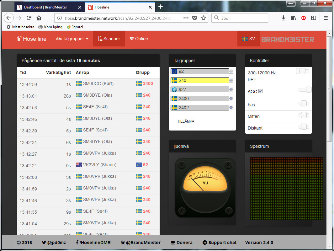 Länkar / Leverantörer / Referenser Honors to the brains behind - 'Äras den som äras bör' - som talesättet säger. Som vanligt så är det inte jag som kommit på allt detta. Här hittar ni länkar till referenser och leverantörer. Leverantörer: [L1] eBay.com Länkar / Referenser: [R1] registrera DMR id @ register.ham-digital.net [R2] Information om DMR på Svenska [R3] DMR aktivitet nationellt [R4a] DMR aktivitet Lokalt SM2 kalix [R4b] DMR aktivitet Lokalt SM2 Överkalix [R5] BRANDMEISTER Dashboard @ brandmeister.network [R6] RETEVIS RT90 Användar manual (Engelsk) [R7] Vår lokala klubb SK2HG [R8] SK7BQ DMR 'HowTo' skriven av SM7FLD (Mycket bra!) [R9] Wikipedia om DMR [R10] En komplett guide Amateur_Radio_Guide_to_DMR.pdf (DMR in US) [R11] Bra introduktions film på YouTube av Kevin Loughlin [R11] DMR användar Databas @ dmr-marc.net 'Disclaimer' The information given on this page is given on an 'As Is' basis and aimed for NON COMMERCIAL use only. The author can not be held responsible for any use of the information. Any registered product / trademark or company name on the page is the property of their respective owners. Notera! Det är helt personliga reflektioner och upplevelser vi skriver om på den här sidan, dessa är inte några 'Expert' kommentarer / utlåtanden. Vi rekommenderar INTE att någon ska göra dom ändringar / Modifieringar som vi gjort och som beskrivs på denna sida, då dessa HELT SÄKERT gör att alla garantier som leverantören utställt OMEDELBART upphör. Våra tester och slutsatser kan INTE, och ska INTE tas för intäkt att samma eller motsvarande resultat eller upplevelse kan erhållas eller efterliknas någon annanstans eller av någon annan. ![]() ©2010--2018 SM2YER Goran |