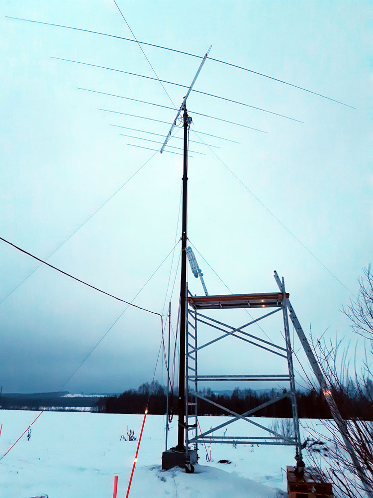 ![]() SWR 1:1,8 @ 14,125Mhz & SWR 1:1,15 @ 18,022Mhz ![]() SWR 1:1,21 @ 21,150Mhz & SWR 1:1,19 @ 27,419Mhz ![]() SWR 1:1,09 @ 27,840Mhz & SWR 1:1,28 @ 53,019Mhz 2029.11.30 Drog in koaxialkabel & rotorstyrkabel till mitt shack, kopplar in min 'MetroVNA' anylysator, kör instrumentet kopplat med blåtand till app i mobiltelefonen. Testar alla band som antennen ska klara + 50MHz som den enl. uppgift INTE ska täcka, verkar som om antennen fungerar som den ska. ![]() 20M & 17M Band ![]() 15M & 12M Band ![]() 10M & 6M Band 2019.11.27 Tog några bilder i dagsljus, klart och solsken, temeratur -18° som lägst under dagen. Återstår att klämma lite PL kontakter och att koppla in rotor styrningen. ![]() EMOTATOR 1103mxx Rotor & Lannabo L2 Antenn 2019.11.25 Monterade rotor och gjorde klart för att få upp själva antennen under förmiddagen medans det är ljust (Dagarna är korta nu) - Mörkret hinner bli kompakt innan allt är på plats. Det är endast veklingar som fixar sina antenner på sommaren! - Dårar gör det på vintern... ![]() Linbana & draglina klar / Antennen på plats uppe i masten 2019.11.23 Letade fram min fabriksnya 'Lannabo L2' Logperiodare, den har legat till sig i över två är, så det är klart dax att få upp den. Antennen ligger kvar i sitt original embalage... ![]() Lannabo L2 i paket Packar upp och kontrollerar att alla delar är med, det följer inte med någon packlista och ingen monteringsanvisning? ![]() Kontrollerar alla delar Börjar med att skruva fast dom fyra distans-pinnarna som går från matningspunkt längst fram, bakåt under bommen till SO-239 anslutningen, allt är färdig kopplat och 'förmonterat' så det är väldigt enkelt att förstå hur man ska göra. ![]() Balun & Matningspunkt / Matarledning Skruvar på dom tre främsta (kortaste elementen) sedan börjar det att bli lite för mörkt, blött & kallt, avbryter för dagen & återkommer i morgon. ![]() Tre element på plats 2019.11.23 Monterade upp en byggställning för att kunna slutmontera rotor och antenn. Bygger en 'stolplinje' med 4meter långa D40mm tjockväggiga aluminiumrör. Buntar fast en RG-213 koaxialkabel och en 8x0,5mm2 ledare för rotorstyrning. ![]() 'Stolplinje' med matar/styr ledning 2019.10.26 Så står äntligen masten upprätt, skruvade på bottenplattan och lyfte masten på plats idag. Den står nu upp med spända bottenstag. ![]() Bottenplatta / Mast på plats... 2019.10.16 Ordnar med 3st stagfästen för den inre stagningen, avståndet till masten blir ca. 7meter. ![]() 2x Stagfästen / Ett stagfäste nergrävt Tillverkar en fästplatta till mast foten, den är tillverkad av 5mm tjock durkplåt med lite förstyvning under. ![]() Fästplatta klar 2019.10.07 River form och städar upp lite runt blivande placering. Tror att detta kommer att bli riktigt bra så-småningom... ![]() Fundament klart! 2019.10.04 Gjuter en 'hatt' ovanpå ett befintligt betong-fundament för att kunna montera Wibe masten, måste också komplettera med en omgång stag-fästen ca. 6meter ut från mastfoten. ![]() Befintligt fundament & armering / ca. 200liter betong på plats ![]() Klart / Betongen har nu brunnit ihop! Fick med komplett dokumentation, Instruktionsbok, Reparationshandbok och Reservdelskatalog. Dokumentation är alltid bra att ha!. ![]() Instruktionsbok / Reparationshandbok ![]() Reservdelskatalog 2019.07.25 Åkte ner till Riddarhyttan (T.o.R) för att hämta en 'WIBE 24M MT' teleskopmast. Resan gick bra, tog ca 40timmar totalt. ![]() Masten lastad / APRS spår Min 'Retevis RT-3S' DMR-Radio med GPS mottagare var med på resan, den skickar upp positions till [R1]GPRS.fi, här ovan ser man spåret då jag var framme i Riddarhyddan. To-Do Beskrivning ![]() Mast beskrivning / Infästning av staglinor