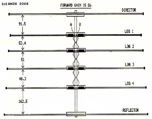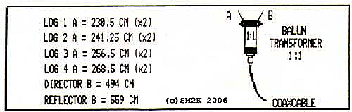 ![]() - LOGOSTAR 6 - ![]() LOGOSTAR6 in the sky, an most excellent antenna. - The "LOGOSTAR6" Antenna project - The idea to use an transpose / cross-feed system to feed the RF-Signal onto several matched driven elements is the "key" to this antenna design. - Why the LOGOSTAR6 - The idea to use several driven elements is an efficient way of getting optimum phasing of currents in the antenna for high gain and an excellent beam pattern. This idea also gives you broader bandwidth compared to a conventional Yagi as a bonus. The cross-feed system and the four matched drive elements, make this antenna excellent for CB-Radio DX from 26Mhz strait up to 28Mhz with less than 1:2 in SWR, without the need of any matching device (trans match o.e.) How does this work - You might ask?. The theory behind this antenna design is real easy, I try to explain the fundamental ideas for the design first. Number one: The RF-Signal on an specific frequency, example 26,5Mhz will automatically "prefer" to be emitted from the radial that is closest in match with the corresponding wavelength, in this case the longest driven element(Dr4) in the antenna construction. Calculation: (300/26,5)/2 = 5,66m (Actual lenght of Dr4 = 5,768m) Number two: The cross-feed system, feeds the RF-Signal with 180dgr off phase to the closest driven elements above and below in wavelength, this makes those element to act as parasite elements, this "phenomena" is caused by the fact that the cross-feed system, feeds the RF-Signal in the direct opposite phase to these elements. Considering these two easy to understand statements, we got an antenna that is forced to switch to the best drive element according to our chosen frequency! (Within the range of 26 to 28Mhz that is!) Is this FANTASTIC or what! And it realy works to! - Honors to the brains behind the theory - The "brains" behind... This antenna is designed using MS-DOS software "LOG-YAGI.EXE" version 1.6 by author Holger Granholm, OH0NC, Notice that this is shareware software, the registration fee is only $10.00us. The "LOGOSTAR6" antenna design is based upon the theory for the "Swan Yagi", The "Swan Yagi" was invented by Oliver Swan, W6KZK and first described by Ed Tilton, W1HDQ in QST 10/69. - History - I received the original drawing for this designe from a guy in Hilversum, Holland. I built the first one in about 1985, and used it with great satisfaction for several years. When i moved to a new QTH the antenna was put on the 'shelf' for a couple of years when i solde it to an radio-friend, i dont know if he newer used it. I got the great honer to build The second antenna for an werry enthusiastic DX-Friend. - The actual antenna design - ![]() Details - The Antenna Layout. ![]() Details - Dimensions / Balun connections. ![]() Details - Active element mounting bracket and cross-feed system - Top view - Building the antenna - I used an 40mm Dural-Aluminium tube as boom, the driven elements, the director and reflector is mounted on to the boom using one 50cm aluminum bracket and one U-bolt clamp for each element. The driven elements is insulated from the brackets with the PVC/Rubber hose, witch is cut into 20cm pices, the 40-50mm hose-clamps is used to tighten the driven element halfs onto the bracket. Distance (Gap) between the two element halfs on the driven elements is about 7.5cm at the center. The director and reflector is POP-Riveted direct to the bracket, no insulation is needed in this case. ![]() Details - Reflector and director element mounting bracket - Top view - Tuning the elements - If you measure the driven elements halfs carefully, no additional tuning is needed. This makes it possible to simply POP-Rivet the 25mm and 16mm parts for the element halfs together permanent. This is also the case for the complete director and reflector elements. - Technical data - Characteristics and performance. Operating Frequency Range 26 - 28.000 Mhz SWR less then: 1:1.8 High Frequency Center 27.500 Mhz SWR 1:1 High Frequency limit 28.200 Mhz SWR 1:2.3 Low Frequency Center 26.300 Mhz SWR 1:1 Low Frequency limit 25.800 Mhz SWR 1:2.2 Forward Gain 11.3 dBD Front / Back rejection ratio Better than 40 dB Front / Side rejection ratio Better than 25 dB - Images - ![]() The Cross-Feed System... ![]() The Balun underneath the boom <-- Go Back! ![]() ©1999/2000/2001/2002 SM2YER Goran |