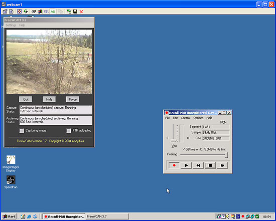 At the moment I'm running this software. SOFTWARE ======================================== OS ................. Windows NT2000 Audio capturing .... REC All PRO v1.4 WX Data capturing .. Image capturing .... FreeWX CAM v3.7 Image animation .... ImageMagic v6.3.1 DNS updater ........ DynDNS Updater v3.1 System scheduler ... System Scheduler v3.53Go Back! ![]() ©1999-2006 SM2YER Goran |