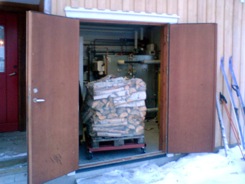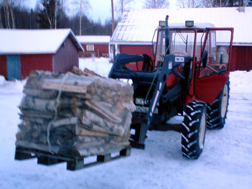 ![]() - Ved / Hantering Dålig eller fuktig ved blir inte bättre av att du eldar den i en bra / effektiv panna, tvärt om så minskar t.ex. fuktig ved pannans verkningsgrad som sämst till under hälften!!! - Det är därför vedhanteringen är en så viktig del av processen, bra vedkvalite minskar även din arbetsinsats betydligt när det sedan är dax att elda. Ved av lövträd (Björk) är att föredra. Blandved går också bra medans ren Furu / Gran ved är något sämre. Bäst / Rätt fukthalt får man genom att kapa / köpa sin ved minst ett helt år innan den ska eldas med. På så sätt hinner veden torka ordentligt. ![]() Vedpallar under tak (Torkad 2-3år) Kapad / kluven ved travas för att torka utomhus,- helst under tak, om du lägger en pressening över, tänk på att denna då inte skall gå ända ner till marken, veden måste kunna få luft för att torka. ![]() Vedpall på väg till pannrummet Vi hanterar klyven/travad ved på EURO-Pall, detta förutsätter naturligtvis att man har tillgång till egen traktor. Nu behöver vi fylla på ved i pannrummet ca: 1ggr / veckan när det är som kallast. Tidigare tog vi in ved med kälke (Vintertid) och med skott-kärra (Sommartid) - Det är naturligtvis mera tidskrävande men det gick också bra. ![]() Vedpall på väg till pannrummet Efter att veden har torkat i 1-2år så är det även bra om du kan värma / yttorka veden i ca: 1-2 veckor innomhus (Varmt) innan den ska eldas. ![]() Veden torkar i pannrummet 0-14dagar innan eldning Go Back! ![]() ©1999-2006 SM2YER Goran |