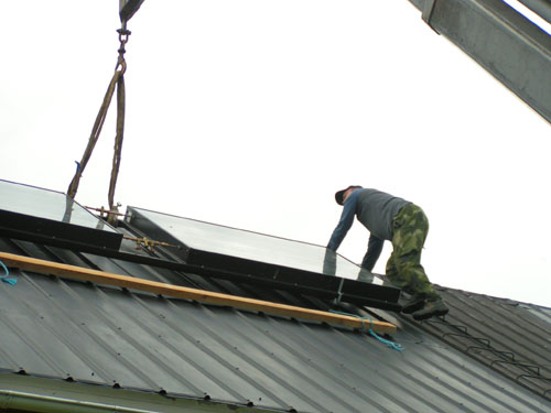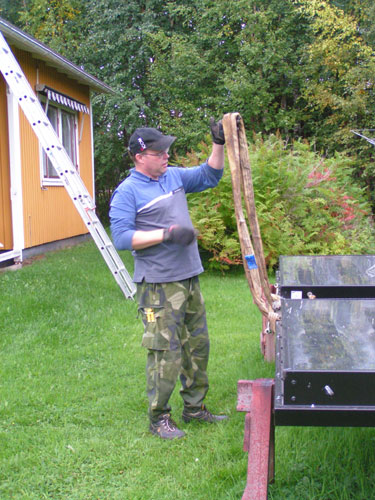 ![]() - Solfångar lyftet - 2008.08.22 Fick äntligen solfångarna på plats uppe på taket. Själva lyftet tog ca: 5 minuter! - Förberedelserna har tagit drygt två månader!!! Fotograferat av Lena. (Sambo) ![]() Traktorn kör fram,- Allt är förberett... ![]() ...Bara att kroka i. ![]() ![]() Jag håller i för att det inte ska börja att svaja... ![]() ...Sedan går det fort... ![]() ...Upp... ![]() ...Upp... ![]() Så är dom på plats! Äntligen. ![]() Bara att kroka loss... ![]() ...och knyta loss stroppen. ![]() ![]() ![]() Klart! Go Back! ![]() ©1999-2006 SM2YER Goran |