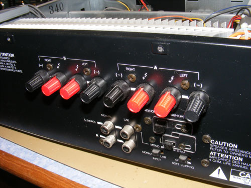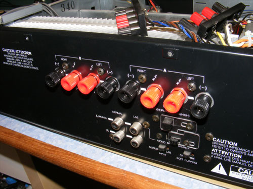2011.05.12 Modifierade NAD 2400 slutsteget med bättre högtalarterminaler för att kunna ansluta med banan-kontakter.