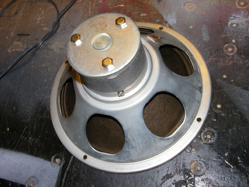 2010.08.03 Kontrollmätte elementet, det är helt avbrott. Jag kopplar i ett 6,7ohms motstånd t.s.v. - Ska försöka att hitta ett begagnat element hos någon 'seriös' renoverare som bytt ut diskanterna.