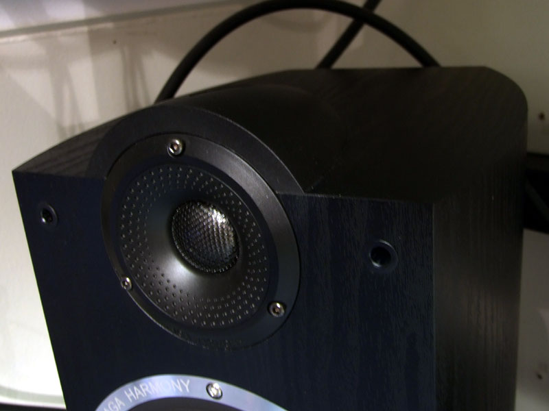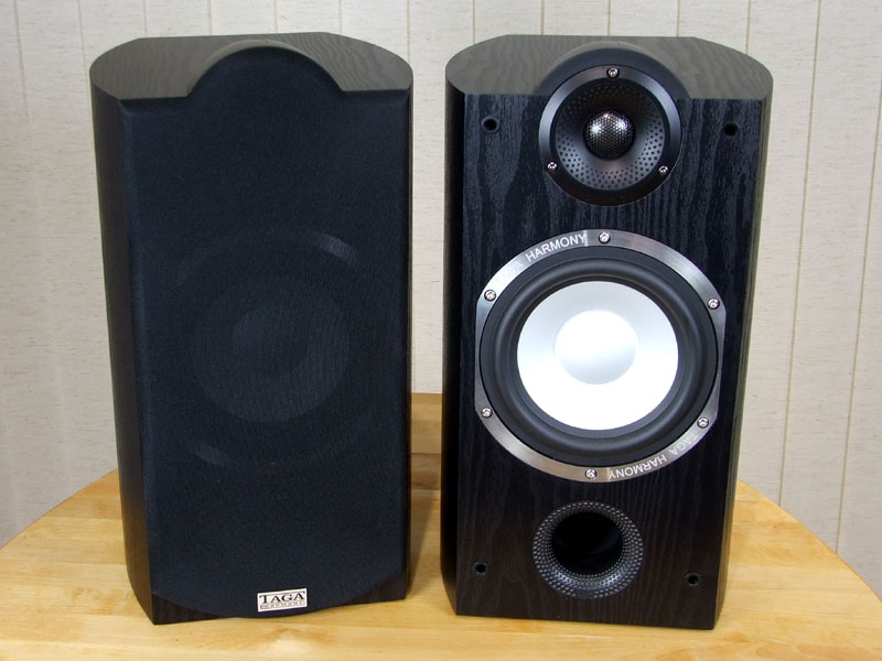 Lyssningsintyck: Basen är mycket 'rapp' och följsam, hänger med oväntat långt ner i registret utan att mista varken spänst eller detaljer. Mellanregistret håller jämnt skägg med basen, detaljrik och öppen. Diskanten är också en klar överraskning, detaljerad och tydlig utan några som helst vasshet eller essss tendenser. Helhetsintryck: Högtalarna är mycket homogena och levererar en både detaljrik och öppen ljudbild med varm grundton och fin närvaro känsla. Tillverkningsmässigt så är elementen väldigt påkostade med bl.a. rektangulär tråd i talspolen, gjuten aluminiumkorg och aluminium kon i basen, diskanten har titan kalott och kopparmantlad aluminium tråd i talspolen. Högtalarnas kabinett har välvda sido stycken och upphöjd diskant o.s.v. Det enda vi hittat som lämnar lite övrigt att önska är kabel terminalerna, dom fungerar och uppfyller sin uppgift, men inte mera. I jämförelse med dom 'DYNAVIOCE Challenger S-5 EX' högtalare jag använt tidigare, kan man lungt konstatera att Platinum B-40 är ett rejält lyft. Dynavoice högtalarna låter i.o.f.s. inte jättedåligt men i jämförelse så levererar Platinum B-40 mera av allt. Ska testa lite mera men min uppfattning är att Platinum B-40 även spelar aningen bättre än betydligt större 'Dynavoice Definition DM-6' som vi också har provat tidigare, återkommer om detta när vi jämfört dom båda lite bättre. Beskrivning I TAGA HARMONY PLATINUM B-40 v.2 är en tvåvägs portad basreflex högtalare. Kaviteten för bas elementen har beräknad volym på ca. 20 Liter (Beräknar resonans frekvens för lådan till närmare 60Hz!?) ![]() TAGA HARMONY PLATINUM B-40 v.2 Kabinettet har konkav böjning för att öka styvheten (TLIE** = Taga Low Interference Enclosures), Sidstycken är ca. 16mm tjocka, topp / botten samt baffel och bakstycke har samma tjocklek. I TAGA HARMONY PLATINUM B-40 v.2 använder man samma bas och diskant element som i den större F-100 modellen Diskant elementet arbetar från 2,5KHz upp till 40KHz, elementet har en D=25mm kalott i titan, 70mm magnet, talspole av koppar mantlad aluminiumtråd. Diskanten är monterad i en våg-guide, upphöjd ca 30% ovanför topp plattan. (TPTTD** Taga Pure Titanium Tweeter Dome)(TWG** Taga Waveguide)(TTP** Taga Top Plate) ![]() Diskant med våg-guide