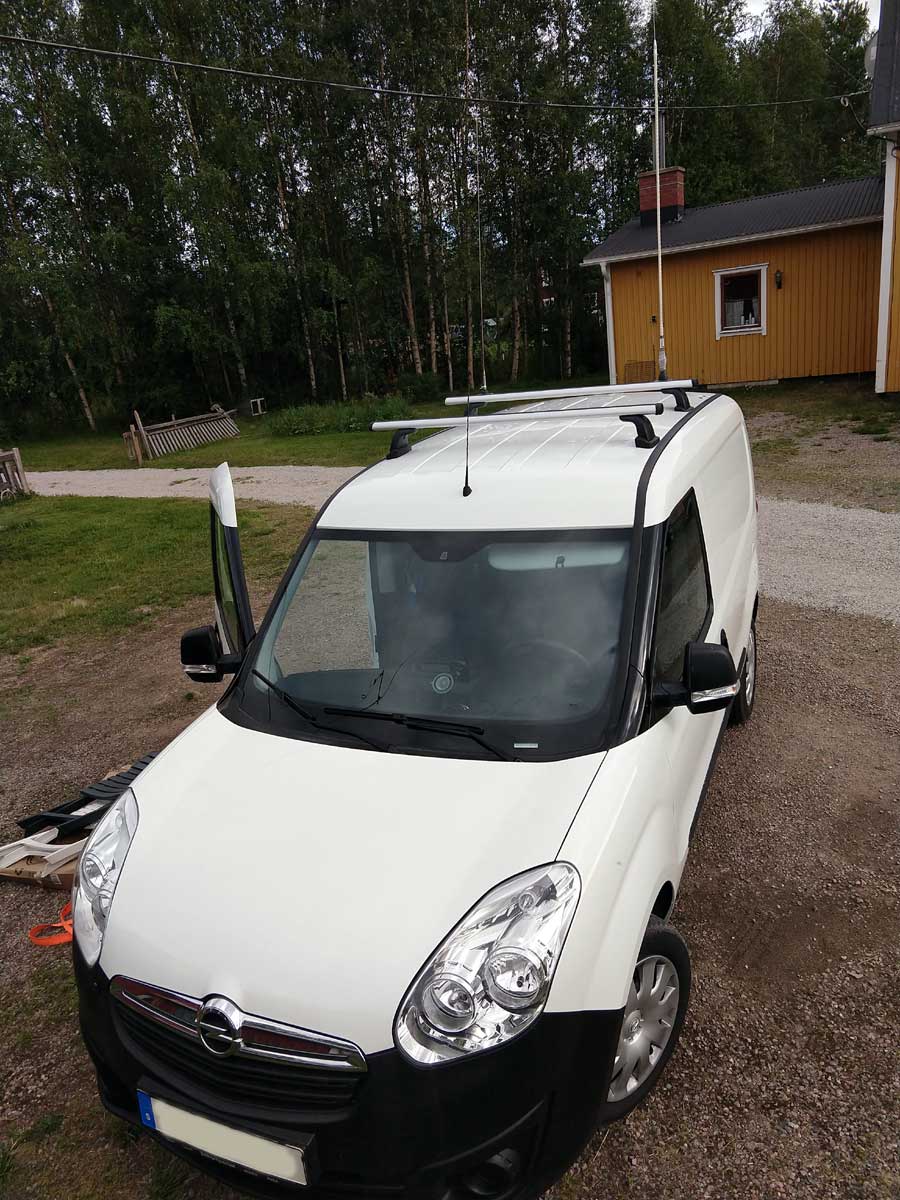 INDEX Senast uppdaterat 2023.01.22 Har byggt ihop ett antal portabla 'GoBox' lådor. I dom har jag monterat en 'YEASU FT-857D' och en 'ERICSSON C52' - Använder nu mina 'GoBox' lådor då jag är mobilt och då man vill köra portabelt från field-day event, sommar QTH eller annat tillfälligt QTH. 2020.07.25 Så har man då hamnat i 'C52 träsket', radion har 'legat till sig' på lager i ett par år. Fick lite problem med en 'C702' radio som tappade uteffekten, så nu blev det läge att leta fram en C52'a. Har även uppgraderat min HF radio, kör nu mobilt med en YEASU FT-891. Läs mera min ERICSSON C52 -->Här! QRV i personbil med ERICSSON C52 & YEASU FT-891 2018.11.27 Har skaffat en resonator 'HUSTLER RM-11' för att kunna köra på 11-meter - Använder den ihop med den korta 22" antennmasten 'HUSTLER MO-4'+ snabbfäste HUSTLER QD-2', antennfjäder 'HUSTLER SSM-2' och antennfot 'WILSON 3/8'. ![]() HUSTLER Mobil antenn / Kollar SWR = 1:1,2 på 27,486MHz ![]() QRV på ch. 24USB ToDo / Kvar att göra... Inväntar HUSTLER RM-20 och RM-40, så blir man QRV på 20 & 40meter också, har RM-80 och den långa 54" antennmasten MO-2 sedan tidigare. Beskrivning Har monterat tre antennfästen, två sitter på bakre lasthållare och den tredje på en egentillverkad aluminiumvikel som skruvats i det bakersta fästhålen för lasthållare. ![]() Wilson 3/8 fäste för HF antenner / 69MHz antenn ![]() Bakre antennfäste SO-239 med VHF/UHF antenn Radioutrustningen består av: CSI CS800D Duoband VHF/UHF Analog/DMR radio, ERICSSON C702 69MHz radio och slutligen en YEASU FT-857D HF/50MHz/VHF/UHF radio. ![]() CSI CS800D / C702 / FT-857D Samtliga har monterats med s.k. delningskablage, manöverdelarna på hyllan / konsolen under innertaket inne i bilen och radio enheterna baktill, i skåpdelen. ![]() Spänningsmatning & säkringar / Hylla med 3st tranceivers