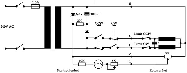 Planen är att byta ut och flytta motor kondensatorn (TRB-4) upp till rotorn för att därigenom 'spara' två ledningar i styrkabeln. Sätter in en bipolär kondensator på 100uF/63Volt som inhandlats från http://www.electrokit.se.