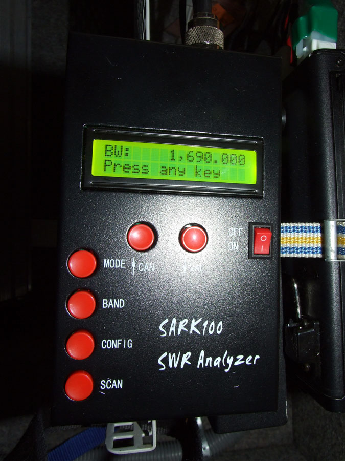 2017.07.05 har testat SARK-100 instrumentet i ett par dagar nu. Det är mycket enkelt att använda, man startar upp det, väljer band och trycker 'scan' så scannar instrumentet igenom valt band, efter några sekunder visas användbar bandbredd och sedan visas center frekvens, swr och impedans.
