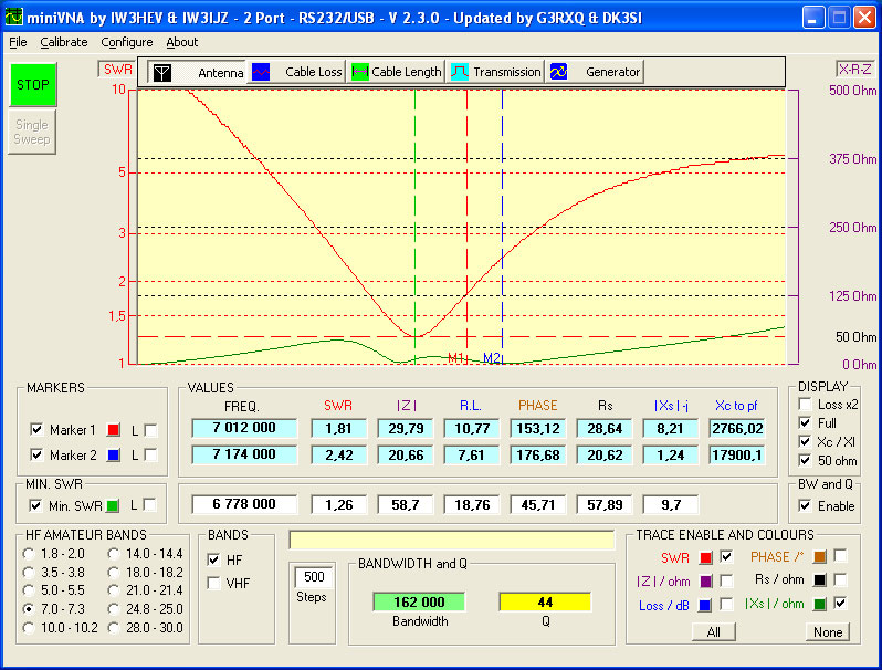 ![]() - 40Meter delta loop - 2009.12.12 - Recalculated and adjusted each side to 13,59 meter. Made a new run with the miniVNA. The Loop works fine on 40/20 Meter band, and is 'usable' but not optimal on 15Meter. Here are the results: ![]() DeltaLoop @ 40meter BAND ![]() DeltaLoop @ 20meter BAND ![]() DeltaLoop @ 15meter BAND 2009.10.14 - Made a run with the miniVNA vector analyser, it seems that the loop is a bit to long, resonant frequency is now @ 6778KHz. Need to recalculate the delta-loop. ![]() Click on image to enlarge About wave propagation speed 'Velocity factor' @ Wikipedia -Calculation - Since i know the resonant frequency and lenght of the 'faulty-loop' i'm able to calculate velocity factor of the wire used.